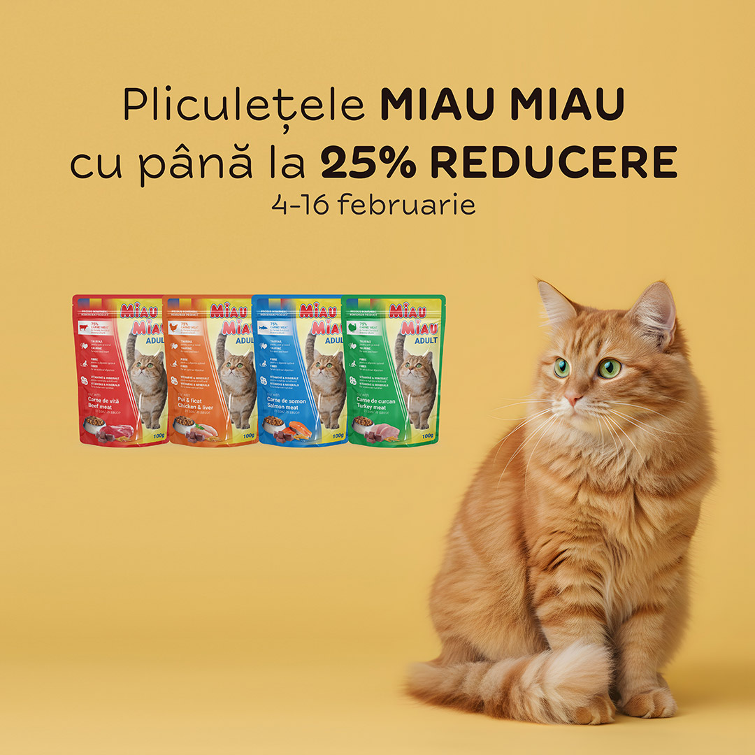 Pachet Economic MIAU MIAU Hrană Uscată Pisică Adult, Vită, 2x10kg – hrană completă premium pentru pisici adulte, bogată în proteine de origine animală, carne proaspătă de vită, ulei de pește și nutrienți esențiali pentru sănătatea blănii, metabolism și digestie optimă.