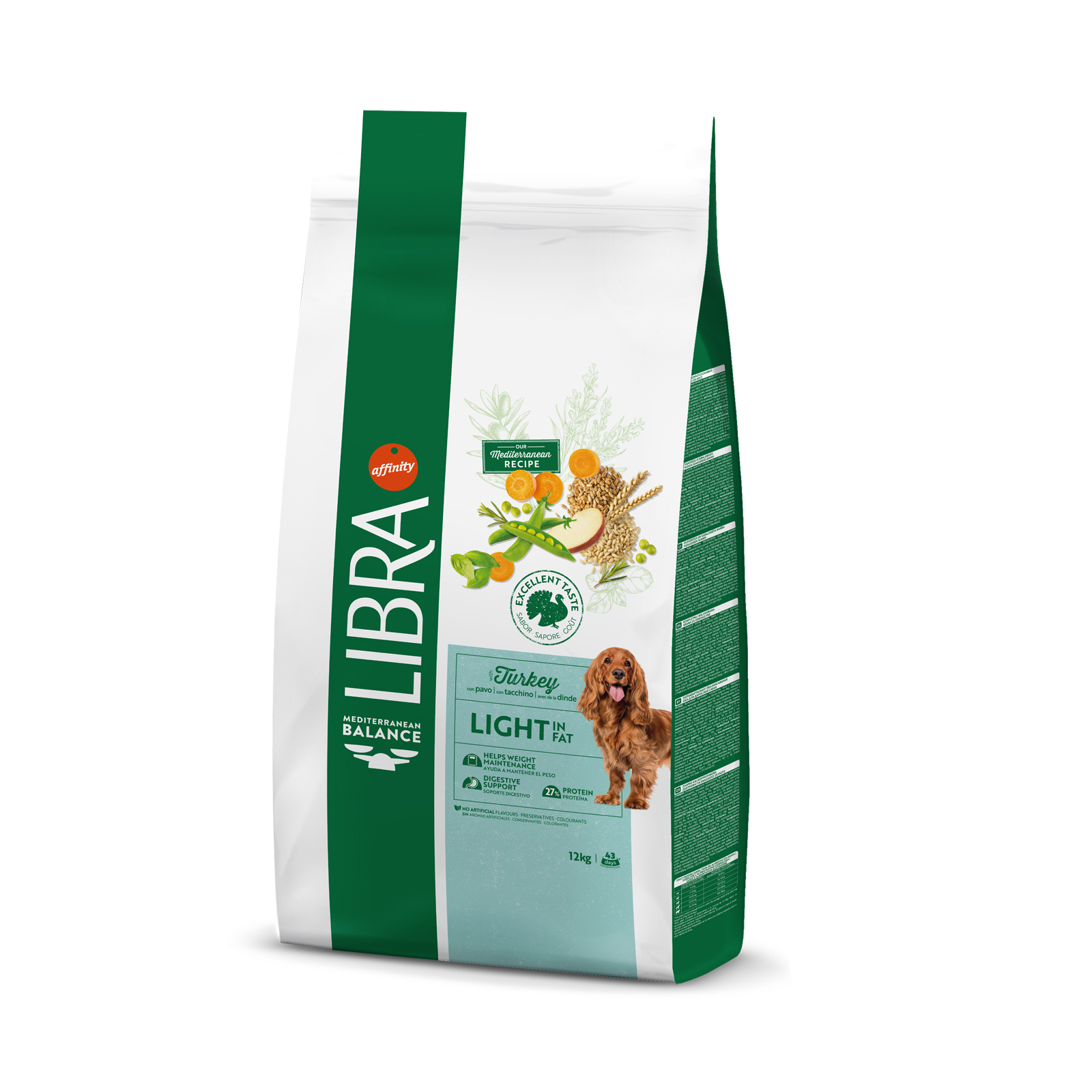 Hrană Uscată Câine Adult, LIBRA Light, Toate Taliile, Curcan, 12kg este o formulă premium, gustoasă și echilibrată, concepută special pentru câinii adulți care necesită control al greutății. Cu un conținut redus de grăsimi – cu 33% mai puțin față de Libra Adult – și un aport crescut de fibre, această rețetă ajută la menținerea greutății optime fără a compromite gustul sau valoarea nutrițională.