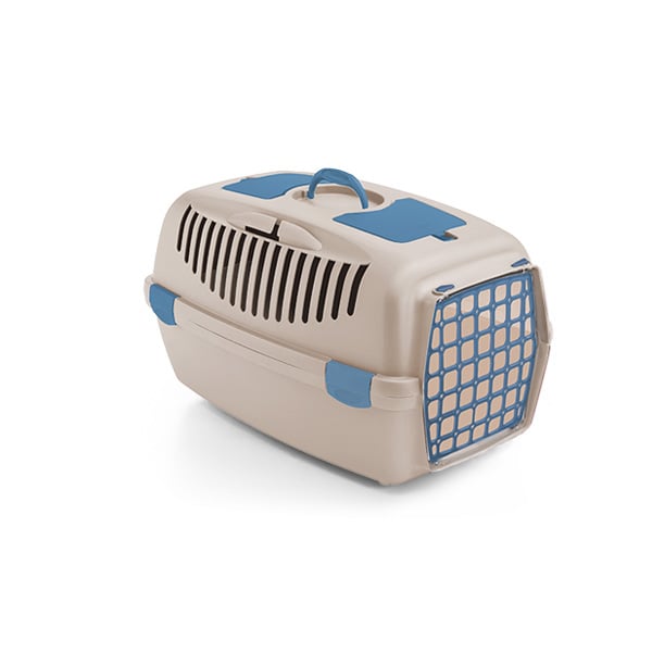 Componente: Plastic durabil, ușor de curățat și întreținut. Ușă frontală din plastic, cu sistem de blocare sigur. Dimensiuni: 61 x 40 x 38 cm – potrivită pentru câini și pisici de talie mică sau medie. Orificii de ventilație laterale pentru circulație optimă a aerului. Mâner ergonomic pentru transport ușor. Design compact, ideal pentru călătorii.