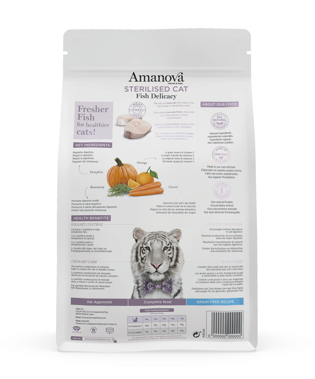 Compoziție Hrană Uscată Pisică Adult, AMANOVA, Sterilizat, Hipoalergenic, Pește Alb, 4kg: