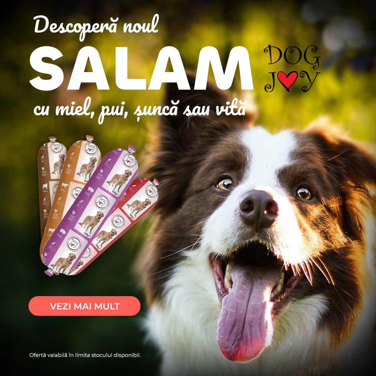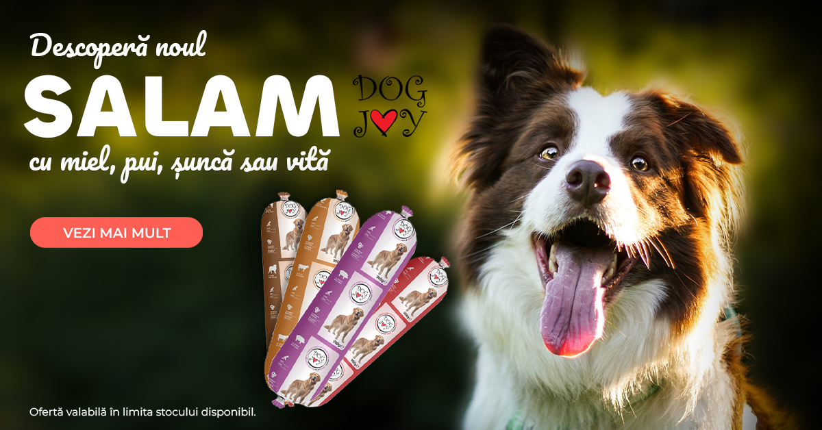 Salam, Hrană Umedă Câine Adult, DOG JOY, Vită, 900g – hrană umedă completă pentru câini adulți, sub formă de baton ușor de porționat. Conține 89% carne și derivate de origine animală, dintre care minimum 4% vită. Textură fermă, gust apetisant și aport de vitamine și minerale esențiale pentru hrănirea zilnică a câinelui.