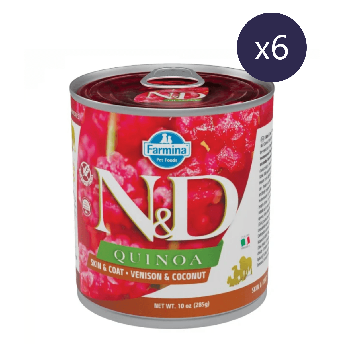 Compoziție Pachet Economic Hrană Umedă Câine Adult, Vânat și Cocos, N&D Quinoa Piele și Blană, 6x285g: