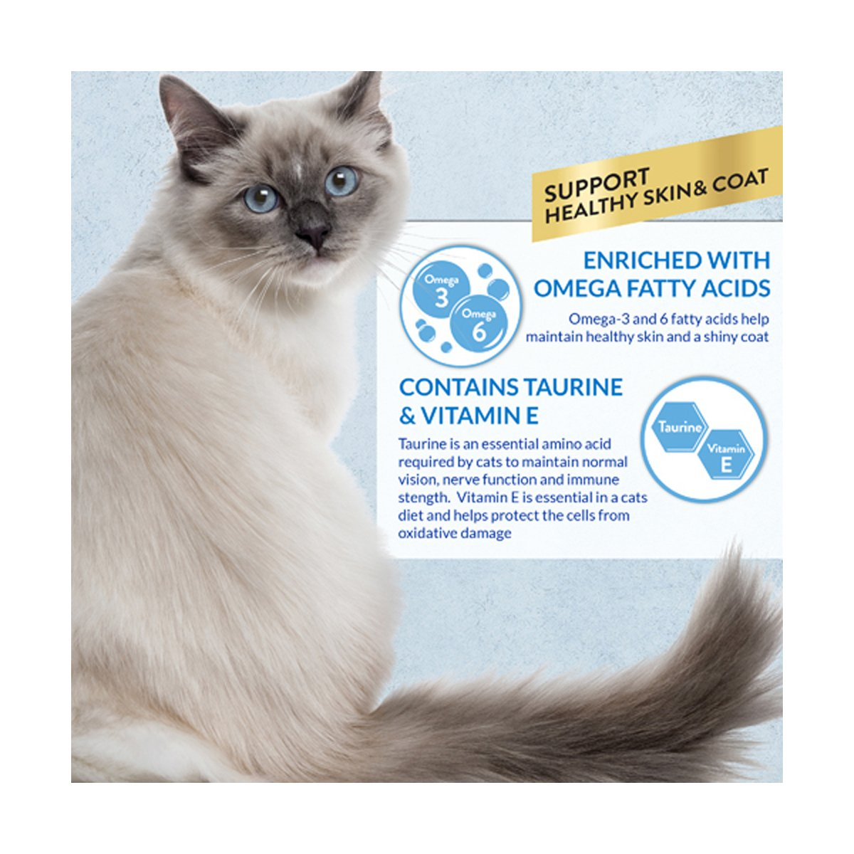 Rețeta este bazată pe ton sălbatic natural pescuit și nu conține cereale, coloranți sau conservanți artificiali. Uleiul de pește bogat în acizi grași Omega-3 contribuie la menținerea unei pieli sănătoase și a unei blăni mătăsoase. În plus, umiditatea ridicată susține hidratarea zilnică – un aspect esențial în alimentația pisicilor.