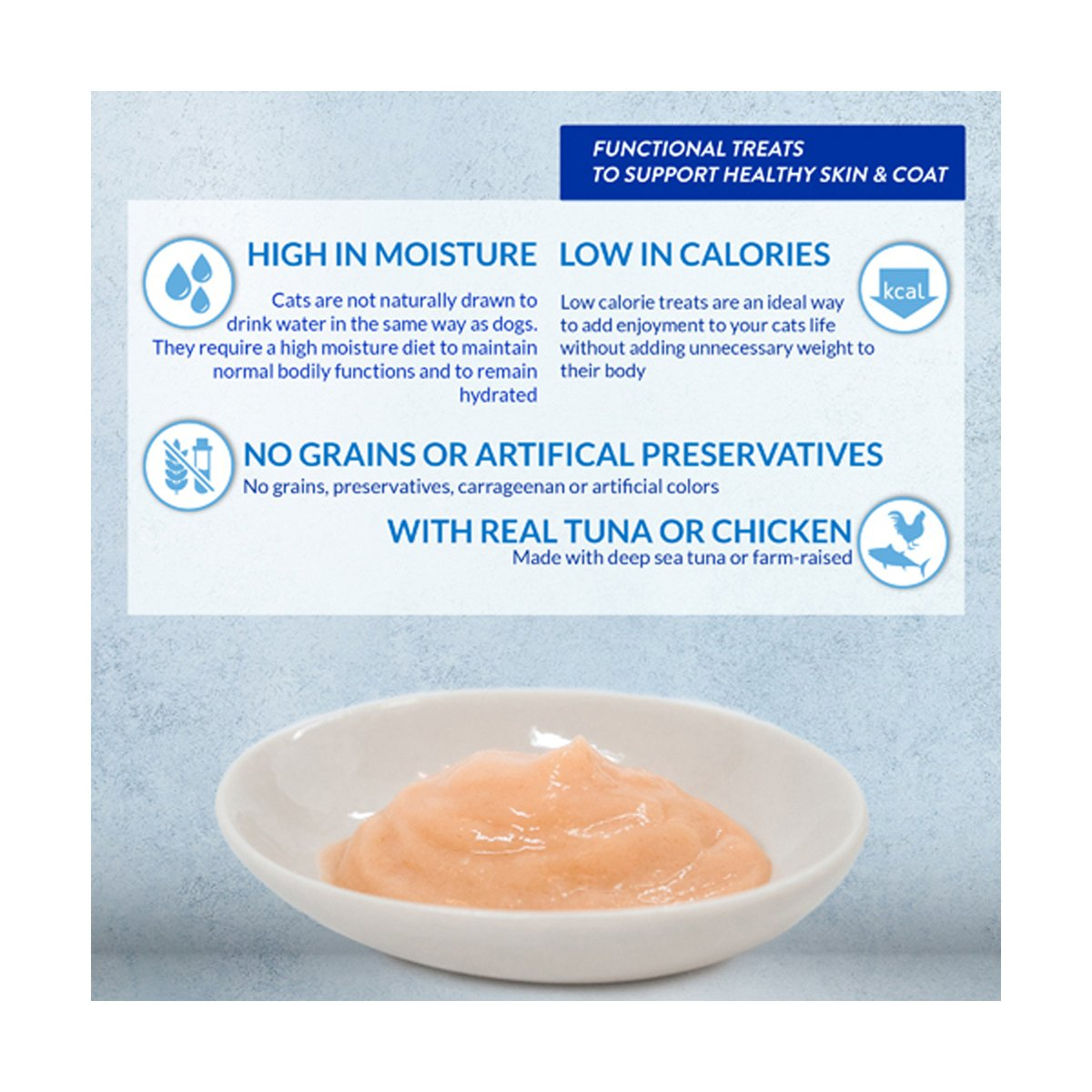 Recompense Cremoase Pisică Adult, CHURU Varieties, Piele și Blană, Ton, 20 bucăți sunt gustări delicioase și funcționale, concepute special pentru a susține sănătatea pielii și strălucirea blănii pisicilor adulte. Cu o textură moale și cremoasă, fiecare tub este ușor de administrat și reprezintă un adevărat răsfăț pentru pisicile de toate vârstele.