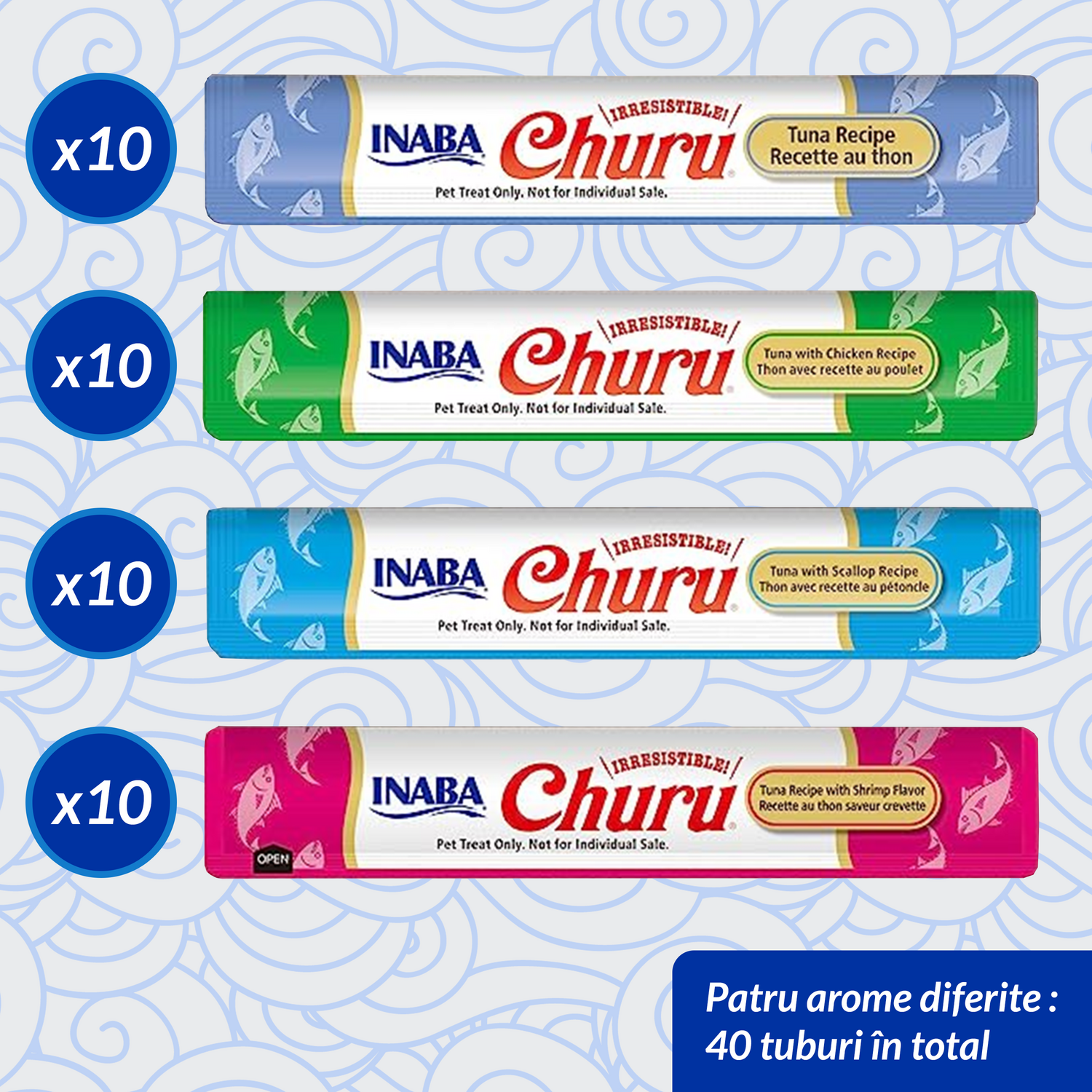 CHURU Recompense Cremoase Pisică Adult, CHURU Varieties, Varietăți de Ton și Fructe de Mare, 40 bucăți