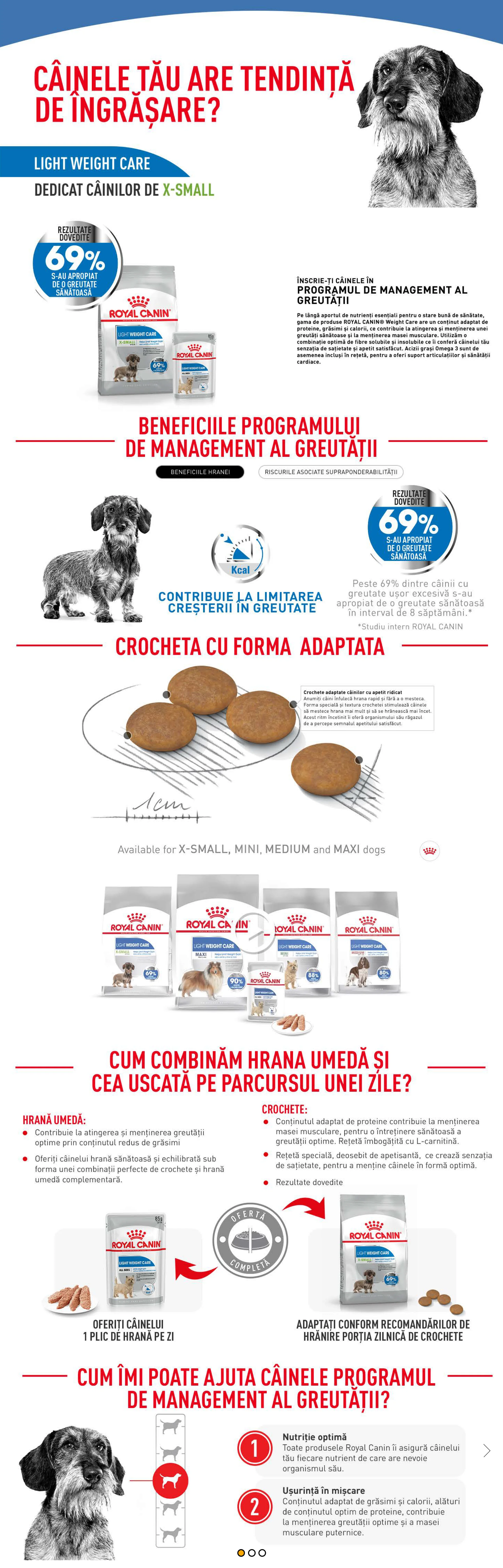 Caracteristici ROYAL CANIN X-Small Light Weight Care Adult, hrană uscată câine, limitarea creșterii în greutate, 1.5kg: